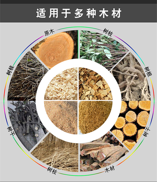 適用於粉(fěn)碎:雜木、樹枝(幹濕(shī)皆可)、玉米芯、下腳料,建築腳板、樹皮、樹葉等。(注(zhù)意(yì),木材粉碎機(jī)不(bú)適用於易燃易爆物(wù)料(liào)的(de)粉碎加工)